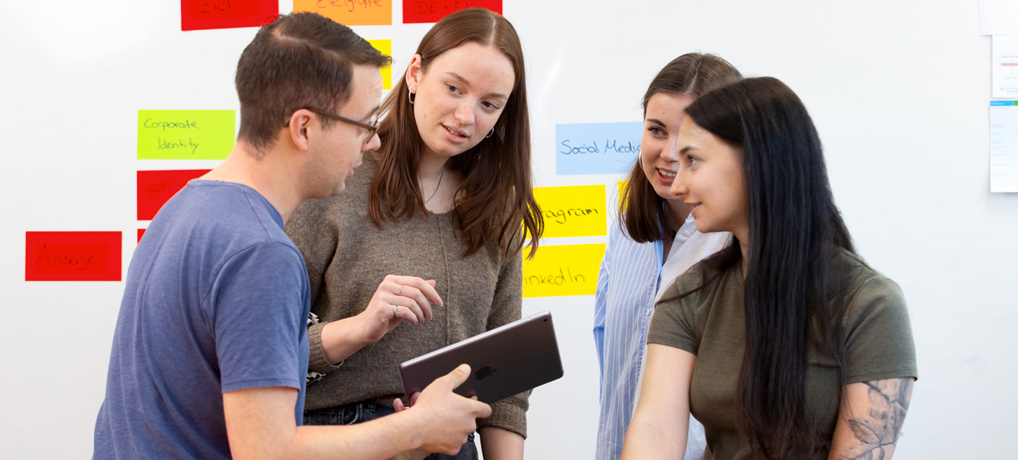 „Mutter und Führungskraft? Ja! Dank den flexiblen Arbeitszeiten und der Homeoffice-Möglichkeit kann ich Karriere und Familie perfekt vereinen und das umso besser mit einem guten Team an meiner Seite. Tatsächlich habe ich im Frühjahr 2022 für zwei Jahre die Seiten gewechselt, also ins Marketing eines Unternehmens, jedoch fehlten mir der Austausch mit den Kollegen und die gute Atmosphäre in der Agentur und so bin ich wieder zurück.“